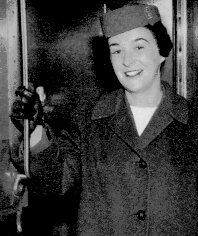 The elderly and handicapped were also recipients of the Zephyrette's attention. A favorite passenger of Zephyrette Marion Vranna was "a crippled lady, able to walk only with crutches. Her charming personality made it a joy to help her.