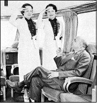 There were always baby bottles to be warmed, and when the parents wanted a quick break, the Zephyrette was there to do a little babysitting. The pinnacle of this role came in 1955 when a blessed event occurred on the CZ, as described in the following excerpts from an article entitled Mr. Stork Rides the "Zephyr" in Western Pacific's company magazine, the Mileposts: "Peter Reed Alexander Zars, of Oakland, will have an unusual story to tell his friends some day. The story...occurred at 11:20 a. m. on March 1 while his mother, Mrs. P. M. Zars was riding the eastbound California Zephyr, then speeding its way through Ruby Canyon in Utah. Peter will not remember the excitement which took place in Car CZ-11 [the next-to-last car in the train, a through sleeper to New York]. Pullman conductor Donovan (now better known as "Doc") was apprised of the situation when the train reached Helper, Utah, and wired ahead for a doctor to meet the train at Grand Junction.... When it was later decided an ambulance was needed, the train was stopped at Thompson, Utah, to wire ahead.